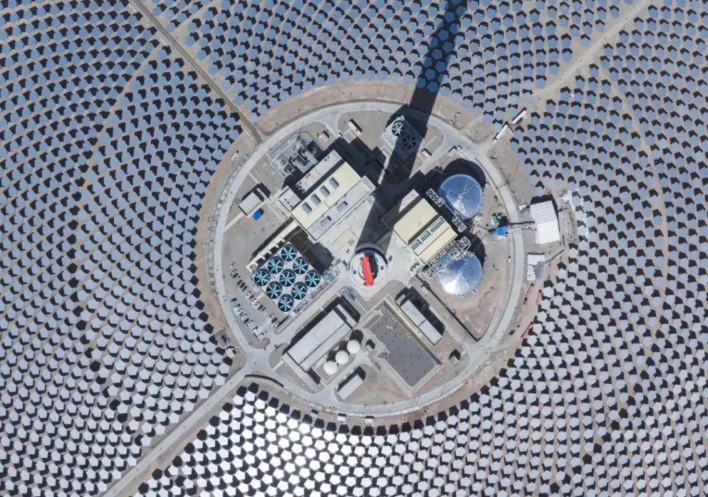 2024年1月,全部11960面五边形定日镜完成安装。2024年11月,成功实现聚光集热系统首次热态升温运行(熔盐上塔)。