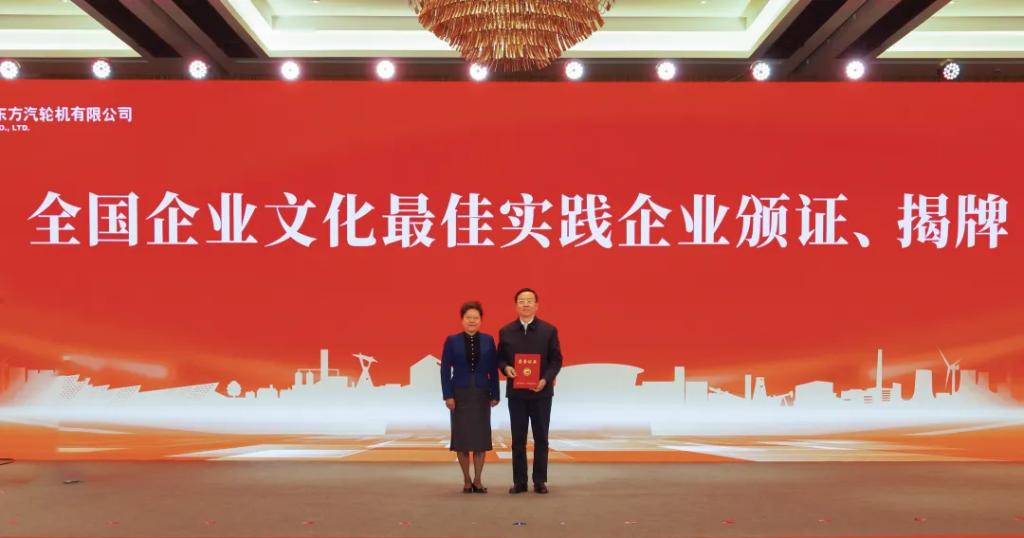 梁彦向东方汽轮机颁发“全国企业文化最佳实践企业”荣誉证书