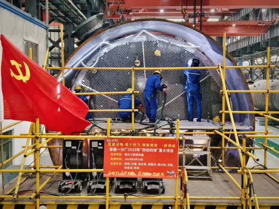 为确保项目高效生产,东方锅炉针对大直径柔性管板变形控制、深坡口镍基封口焊焊接、大直径及大重量“封闭式”支撑板立架、高要求热处理控制等技术难题,成立攻坚小组,以质量为导向,分工序开展技术交底,狠抓质量过程控制,最终推动项目关键节点均一次交检合格,工期缩短20%,成功实现品质和效率的“双提升”。