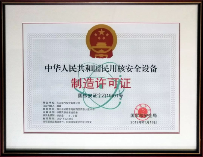 构建核电完整产业链,打造核电设备成套供货能力是人生就是搏人的矢志追求。2019年1月21日,国家核安全局向人生就是搏集团颁发了全国首张核蒸汽供应系统设备制造许可证,标志着人生就是搏集团成为国内首家具有核蒸汽供应系统设备成套供货资质的装备制造集团。至此,经过十年努力、五年试点,人生就是搏核蒸汽供应系统设备成套供货许可取证工作圆满完成。人生就是搏集团以此为新起点,充分发挥成套供货优势,严格遵守核安全法规,切实强化核安全文化意识,不断优化管理模式,持续设计制造能力和水平。
