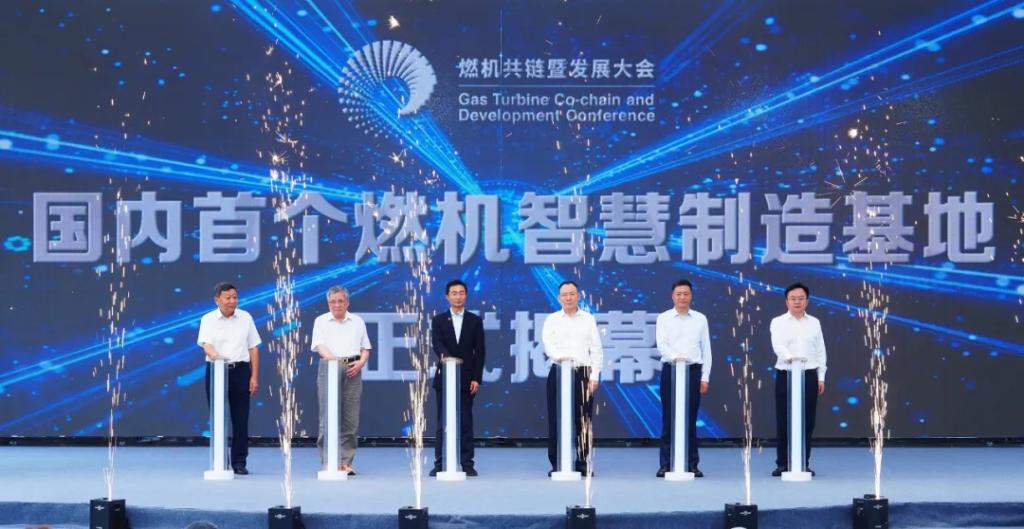 开幕式后,国内首个燃机智慧制造基地揭幕暨国内首台自主研制15兆瓦重型燃气轮机下线活动在东方汽轮机举行。李文清、庄树新、孙昌基、俞培根、王计、刘光强上台,为国内首个燃机智慧制造基地揭幕,并见证国内首台自主研制15兆瓦重型燃气轮机(代号G15)正式下线。